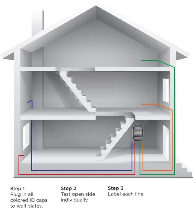Use: Features an LED display for readability, 4 color coded ID finders to locate and identify cables, and it displays "pass" when no failures are indicated for each remote
