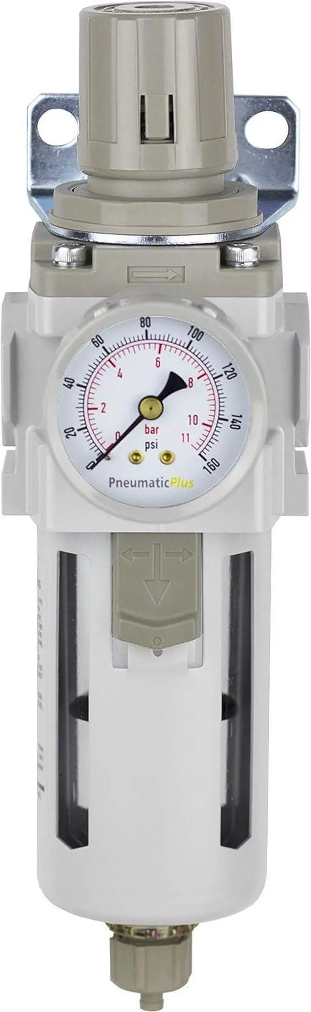 Use Metal bowl in pressure exceeding 150 PSI or when solvents harmful to polycarbonate is present Pressure Gauge, Bracket Included, The gray foam on the bottom of the filter bowl is packing material. Remove Before Use.
