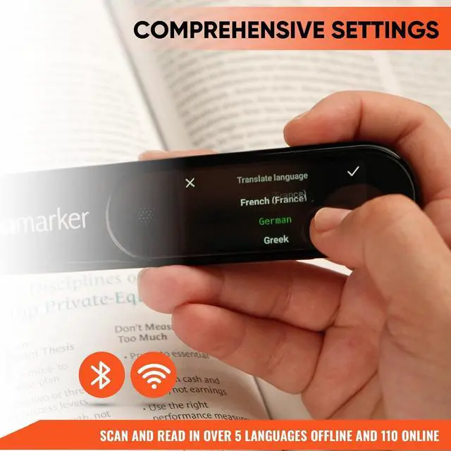 COMPACT & PORTABLE DESIGN: Lightweight and portable, this advanced word translator pen is perfect for on-the-go use. Scan, translate, or read text anywhere, and connect Bluetooth headphones for an immersive audio experience.
