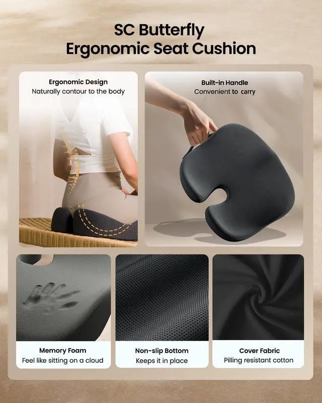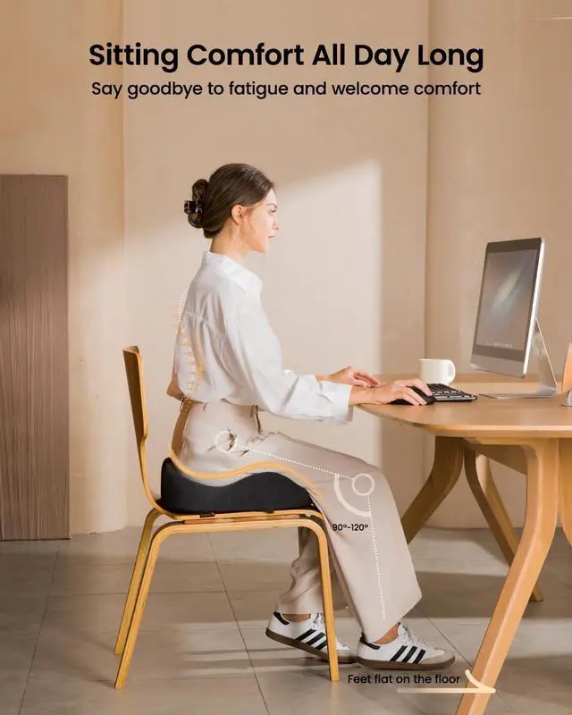 Take Comfort Anywhere: ProtoArc seat cushion relieves lower back and hip pain, perfect for road trips, exercise, gaming. Standard size fits all body shapes, suitable for car seats, office chairs, wheelchairs, ensuring superior support and comfort anytime, anywhere