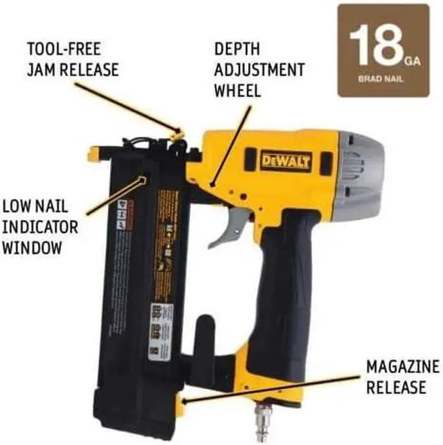 The DEWALT DWP12231 18 Gauge 2 in. Brad Nailer drives 18 Gauge brad nails from 5/8" to 2" which makes it ideal for fastening decorative molding, casing, kitchen crown, and shoe molding. With its long life, maintenance-free motor, the DWFP12231 is ready to go to work.