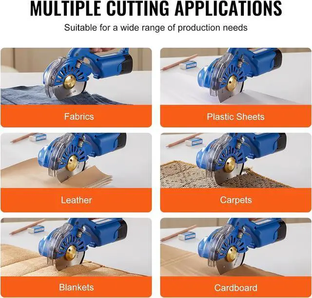 Wide Range of Cutting Applications: This electric rotary cutter can cut lightweight to medium-weight multiple layers of materials, including fabric, cotton, silk, synthetic fibers, and leather. It's suitable for both household and commercial/industrial use, making it ideal for clothing factories (leather, belts, bags), textile factories (weaving, ribbons, ropes), and paper factories (boxes, paper products).