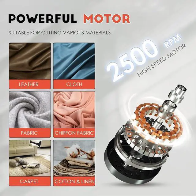 • INDUSTRIAL GRADE SCISSORS- This electric fabric cutter is able to cut multi-Layer cloth, fabric, cotton, silk, synthetic fiber, carpet and other materials, suitable for commercial and industrial use! Not suitable for Cardboard, flannel and fluff fabrics !