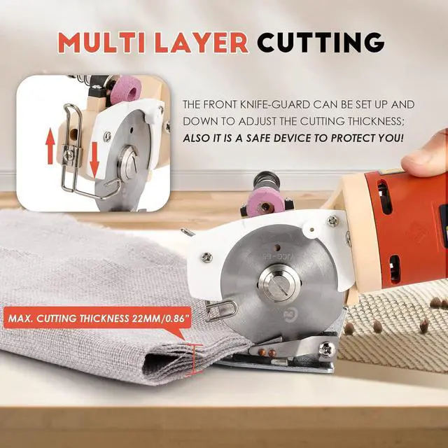 Electric Rotary Fabric Cutter, Multi-layer Electric Rotary Cutter for Fabric, 0.86" Cutting Thickness, Carpet Cutter Heavy Duty 2.5LB, with Replacement Blades, Sharpening Stones 110V