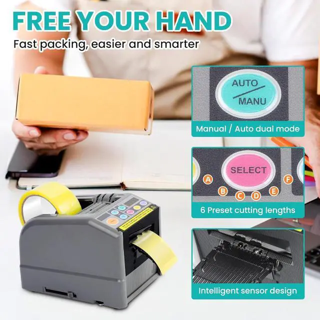 ADVANCED SAFETY: Integrated with a sophisticated sensor system, the automatic tape dispenser cutter automatically halts operation to prevent damage when a tape jam is detected. Simply clearing the jam and pressing the start button resumes operation smoothly, enhancing both safety and convenience.