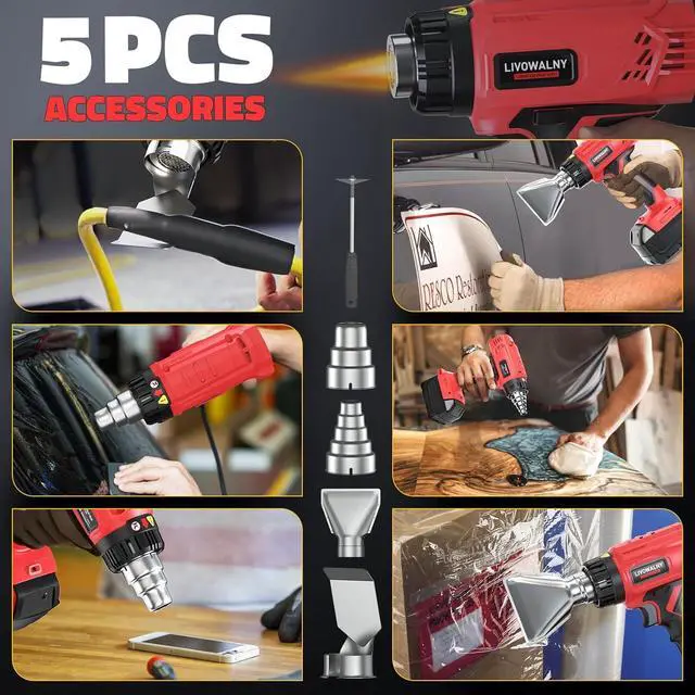 Scientific Ergonomic Design & Wide Applications LIVOWALNY battery operated heat gun has a scientific ergonomic design handle and weighs only 1.2 lbs. Ideal use for shrinking soft tube, shrinking wrap, heating PVC, electronics, cell phone repairs, loosening rusted bolts, and other heating or thawing purpose.
