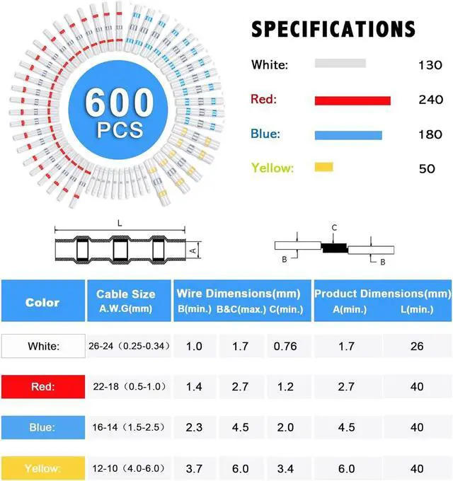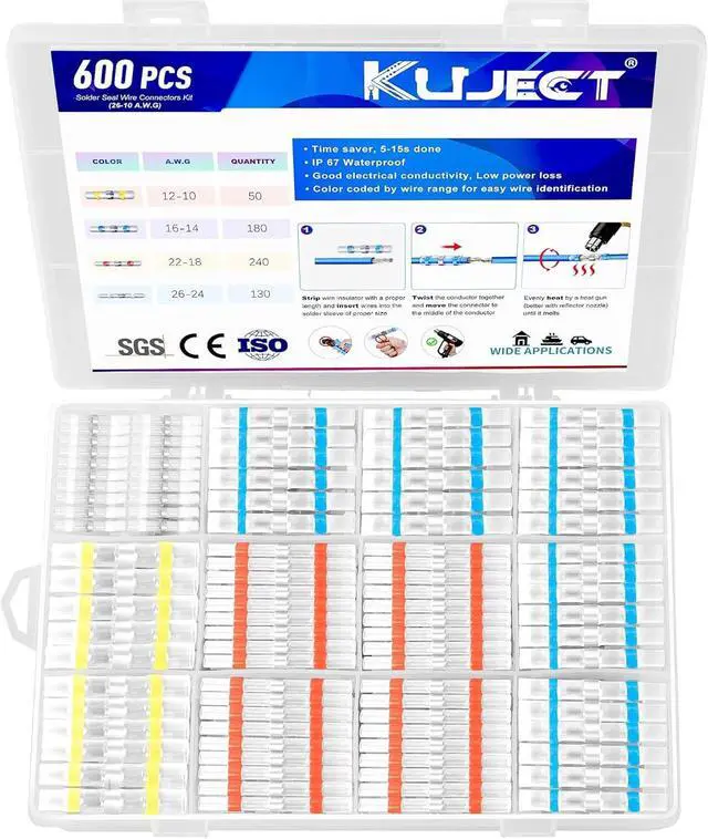 IATF 16949:2016 Listed: The Kuject solder seal connectors meet the newest standard of International Automotive Task Force, which is the most standardized way for you to repair or modify your car