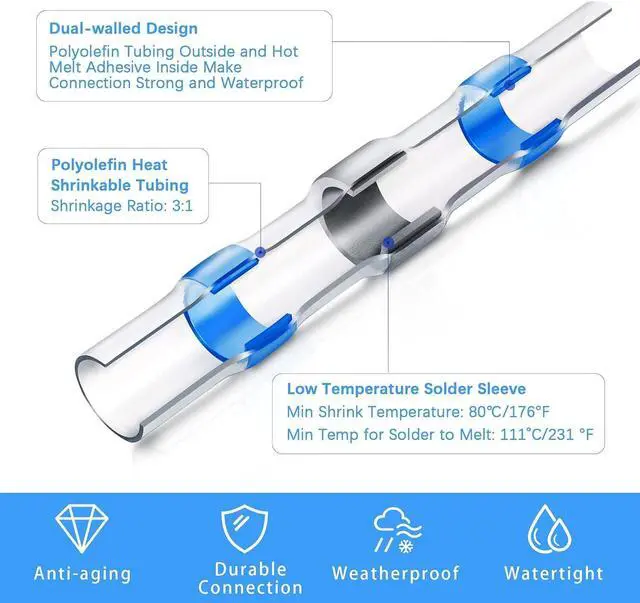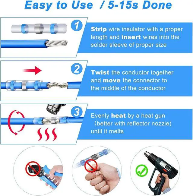 A Short Time: Use exclusive material in the butt connectors to avoid shrink tubing melting before solder ring