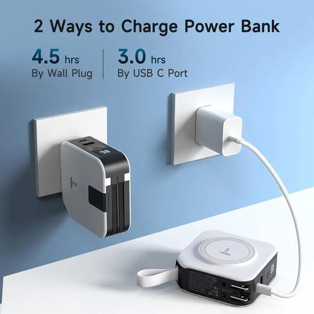 GLOBAL POWERBANK - A Wireless Power Bank Portable Charger, Travel Portable Battery, Dual USB, USB-C & A/C Adapter Phone Charger Laptop Charge Portable Battery Pack.