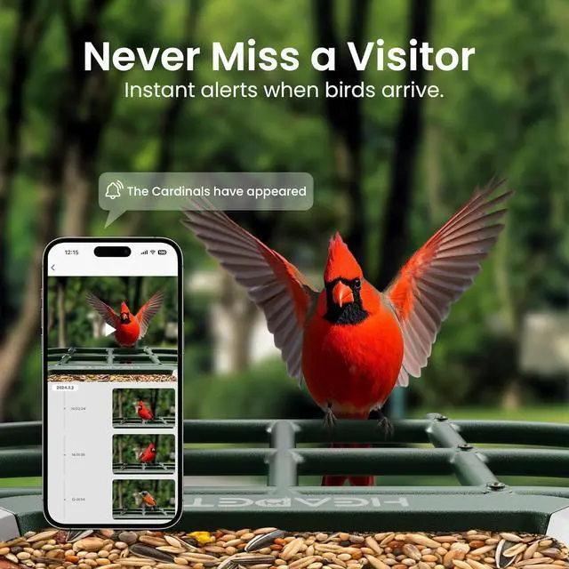 - Solar-Powered for Hassle-Free Use: Designed for long-lasting, sustainable birdwatching, HEAPETS smart bird feeder runs on a built-in solar panel, reducing the need for frequent charging. Enjoy year-round operation without worrying about power interruptions. (Wired power is also possible).