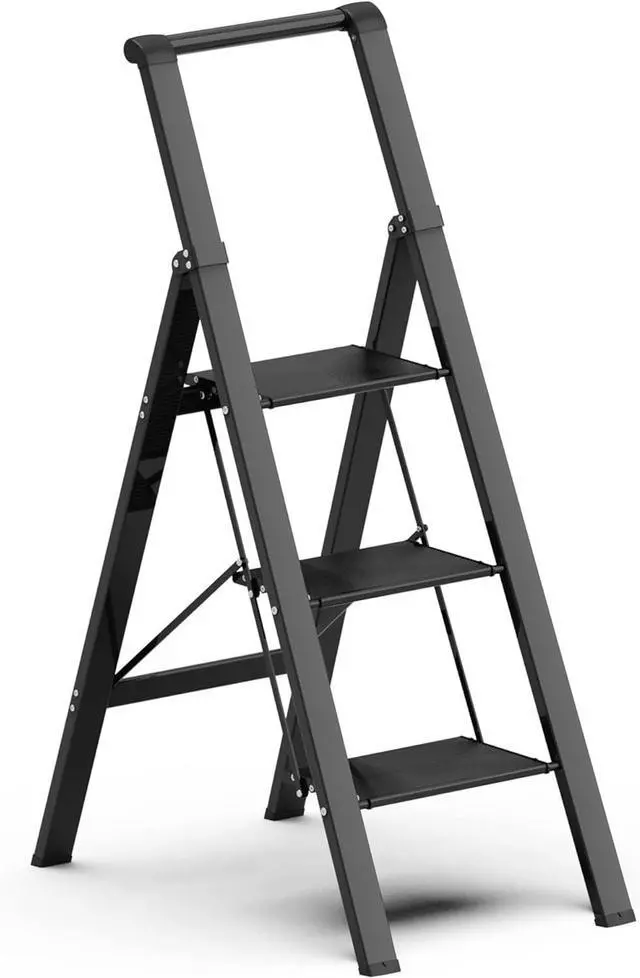 - Lightweight & Space Saving: This slimline stepladder can be folded compactly and placed in a narrow space, under a bed, or in a convenient corner, perfect for home, kitchen, bedroom closet, garage, pantry and library use. You can easily to store and carry