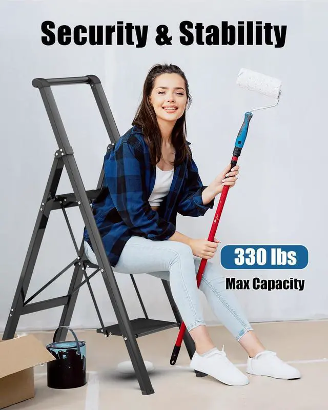 capacity: 300LBS. The heighten handrail design ensures the safety of the ladder