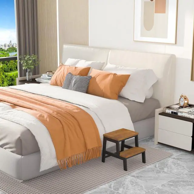 - ENVIRONMENTAL: The bed step stool make up of 100% solid wood, NOT COMPOSITE WOOD OR FIBERBOARD. And the iron frame comes with paint technique get rid of rust