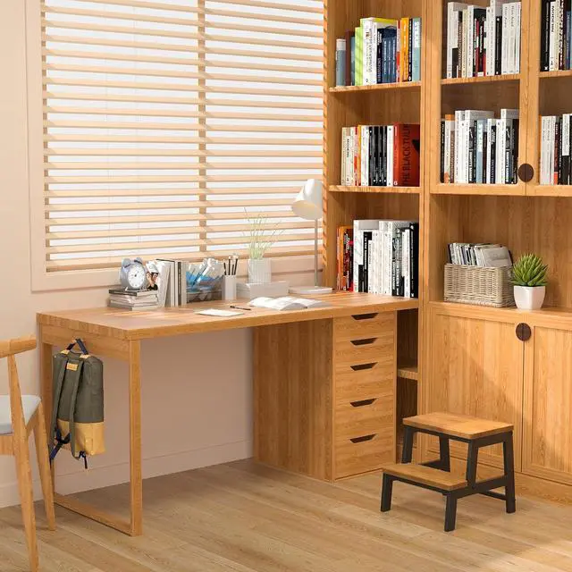 This wood step stool is competely safe for kids and adults. The wide top platform provides a Safe & Stable Standing Area. And solid trapezoidal frame design allows great stability and balance. Non-Slip Rubber Feet Prevent from Slipping.