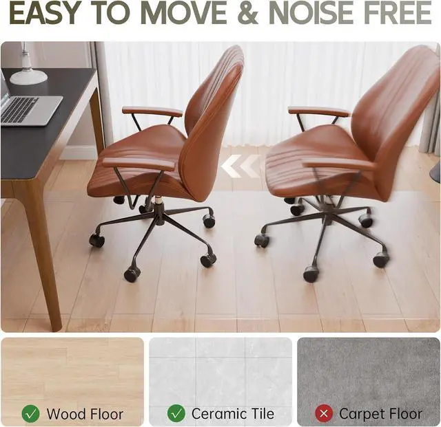 - EASY TO CLEAN AND MOVE: The desk chair floor mat are impermeable to water, so when coffee, milk and other liquids are spilled on top of the mats, you just need to wipe them with a rag to get a clean mat for desk chair. The surface of the office chair mat for hardwood floor is well-proportioned, the chair slides easily on it, convenient for office work