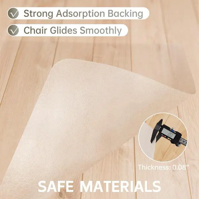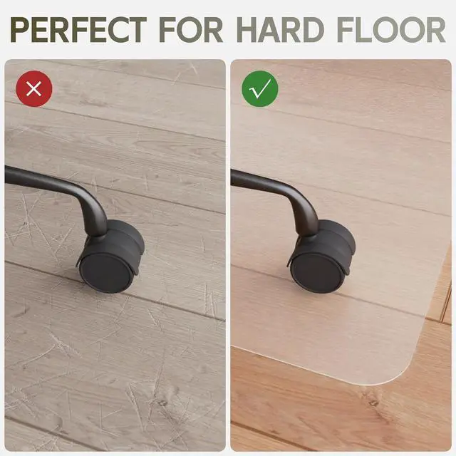 ODORLESS & NOISE FREE: The chair floor mat is made of PVC material, which is odorless and non-toxic, providing protection for the indoor environment, harmless to children and pets, you can rest assured that use. The clear desk floor mat is close to the floor, isolating the sound of chair wheels rubbing on the floor, giving a quiet environment for life and workfalse