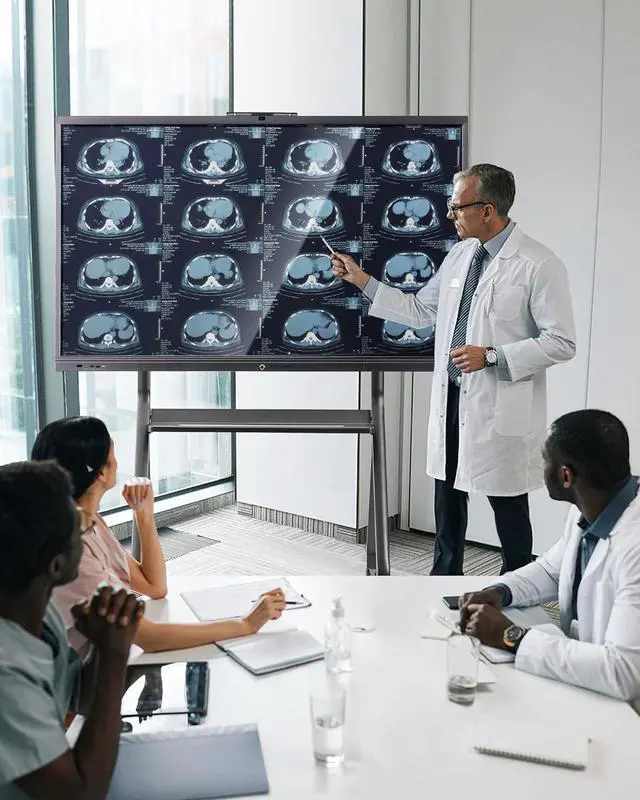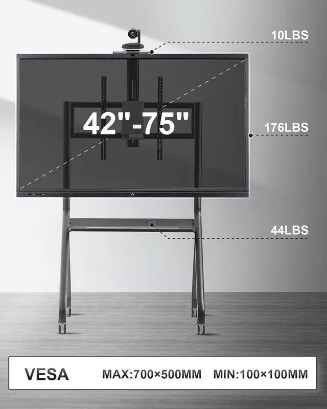 Wide Compatibility: Designed for 42"-75" screens, this smart board stand is the perfect solution for a range of meeting devices, ideal for modern offices and classrooms.