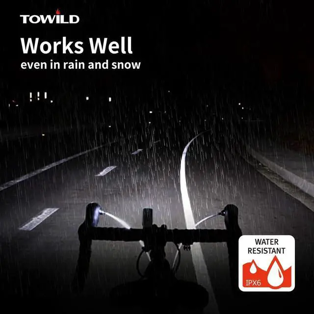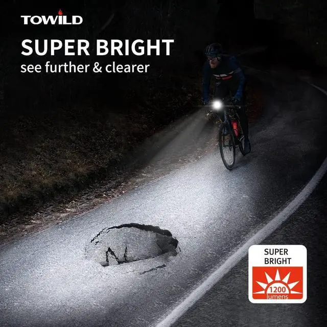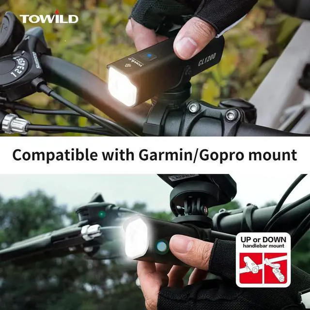 ANTI-GLARE & WATERPROOF BICYCLE LIGHT - The bike headlight has a glass diffuser that helps to evenly distribute its light throw pattern and uniformly illuminate the road in front of your bike. And it makes the beam cut off on the top end to avoid dazzling oncoming traffic (cars, other bikers, walkers/runners)falsePACKING LIST AND 2-YEARS GUARANTEE -1* Bike Light, 1*Mount for Handlebar, 1*Compatible Base for Gopro, 1*Type-C Cable, 1*Manual, 1*Discharge Adapterfalse- SUPER BRIGHT BICYCLE LIGHT - CL1200 bike front light with 1200 lumen max output, which allows you to see further & clearer when night riding at high speed over 30km/H.