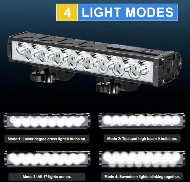 - Long Runtime & Power Indicator: Built-in 8000mAh rechargeable battery, our bike lights provides 4.5 to 9 hours running time, which can meet your long time riding lighting needs. The bicycle light also has low battery power display, which helps you accurately grasp the remaining power, so you'll never be left in the dark unexpectedly.