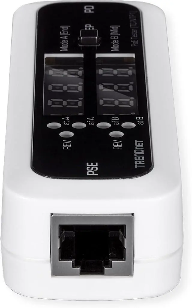 MODES: The TC-NTP1 supports three testing functions. T-mode allows you to test your PSE device to determine the PoE switch's or injector's supported PoE standards, as well as voltage output. N-mode is used for non-standard passive PoE devices. I-mode is used for PoE inline testing, which displays the voltage, amperage, and wattage of the connected PDfalseTREN