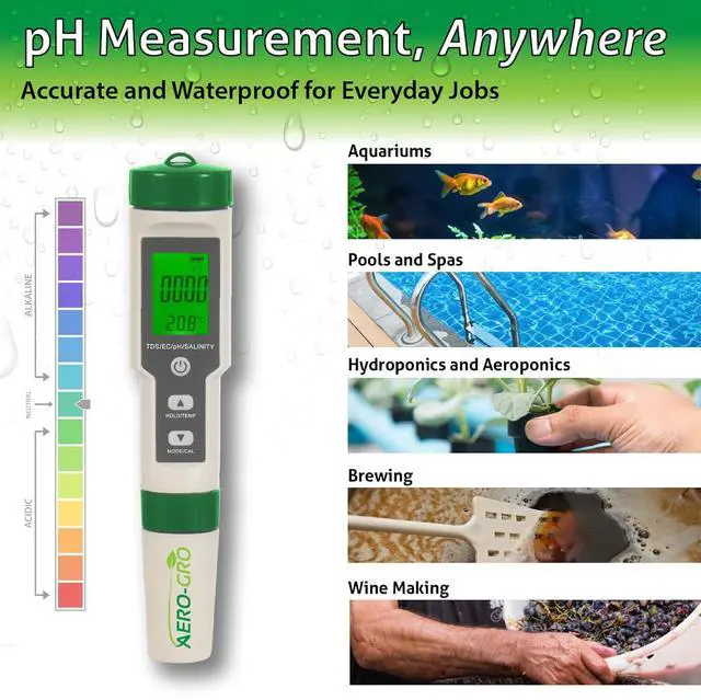 METER: Measure pH, TDS, EC, Salinity%, Salinity ppm, and Temperature with exceptional precision. Get reliable and uniform results every time.