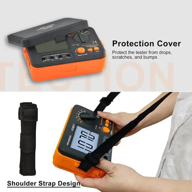 - Humanized designThe lightweight ohm meter has a protective cover design to protect the tester from drops, scratches, and bumps. Feature with adjustable shoulder strap design, you can operate both by two hands, easy to carry and prevent the device from accidentally falling