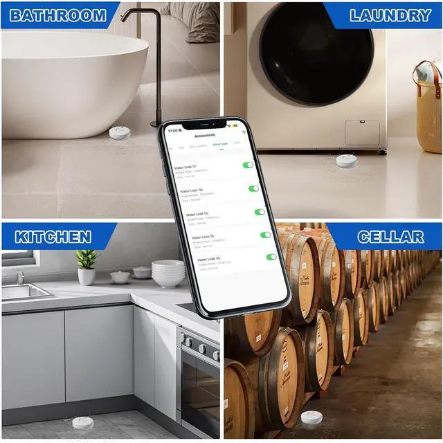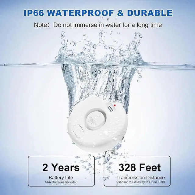 - Dual-Sensor Precision: Equipped with dual-sensor technology for early leak detection: - Top probesdetect dripping water. - Bottom probes (IP66 waterproof) sense water pooling. Ideal for high-risk areas like sinks, windows, or pipes. Powered by included AAA batteries.