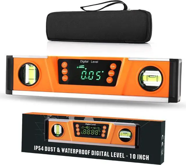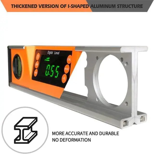 JOBSITE TOUGH -- Sturdy solid I-beam aluminum frame, Neodymium magnets, rubber end caps and IP54 dust/water splash resistant protection for harsh working environmentsfalseDUAL FUNCTIONALITY With STRONG NEODYMIUM MAGNETS -- As a true (absolute) digital level and electronic inclinometer / protractor lets you set or check relative angles between surfaces. Plus, magnetic base firmly attach to ferrous metal surfaces like conduit, pipe, steel construction framing, metal fabrication and morefalse
