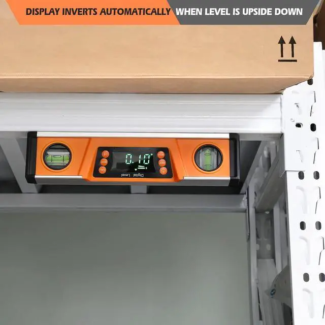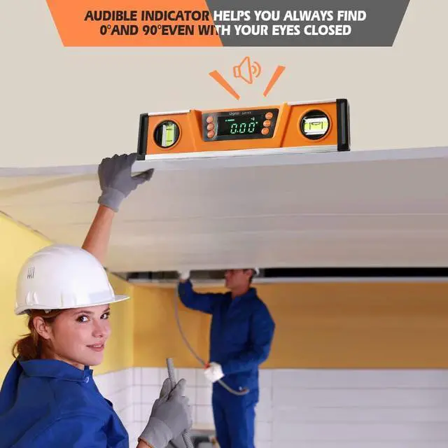 - LARGE, BRIGHT GREEN LED DISPLAY With AUDIO INDICATOR -- This level features a large, bright LED display that flips, so you can easily read your measurements all day and night even in the darkest spaces. What's more, we craft our digital level with audio indicator functionality, so you can achieve level and 90 degrees even with your eyes closed