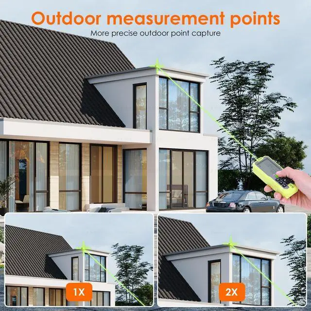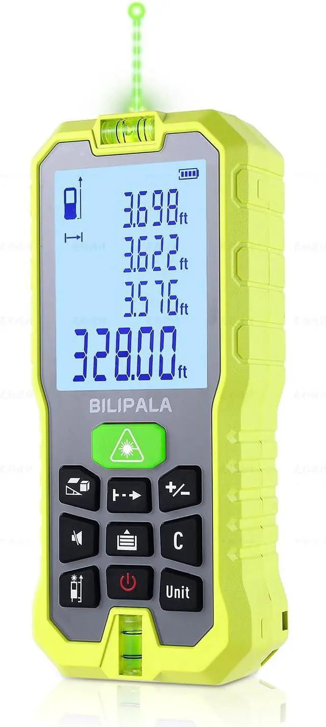 Ultimate Multifunctional ToolThis laser measure does it all: measuring area, distance, volume, continuous measurement, Pythagoras (3-point), addition/subtraction, and more! With 20-data memory, low battery alerts, and 150s auto-shutoff, its the compact, replace a multitude of separate digital measurement tools. falseDurable & PortableBuilt with high-quality materials, this laser measure is designed for long-lasting performance. Its IP54 waterproof and dustproof rating ensures maximum protection in tough working conditions. The ergonomic design, soft-touch body, and included wrist strap provide a comfortable grip and easy portability. false- Accuracy MeasureLaser measure combines ±2mm precision, 0.5 s speed, and auto-leveling technology to make every job measuring faster and more accurate than ever. Green laser distance measure generates a point that's up to 4x brighter than standard red beams.