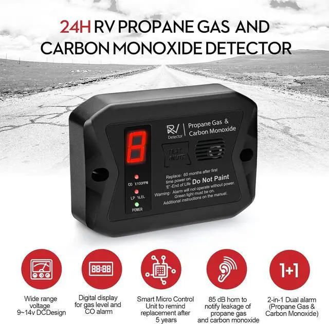 Key Features Dual Gas Detection: The RV Carbon Monoxide/Propane Gas Alarm detects hazardous levels of carbon monoxide and propane gas, alerting you to potential dangers before they become life-threatening. It uses advanced electrochemical sensors for CO and semiconductor sensors for propane, ensuring high sensitivity and accuracy.
