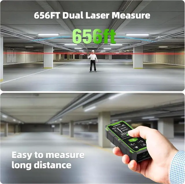 Perfect for contractors, electricians, carpenters, and DIY enthusiasts, enhancing accuracy and efficiency on every jobfalse- Ultra-Long 656FT Laser Measurement Fast & AccurateThis dual-head laser distance meter supports bidirectional & unidirectional measurement modes, allowing seamless switching for different tasks. The adjustable reference enhances precision, eliminating constant repositioning. With a maximum range of 656FT (200M) and ±1/8 inch (2mm) accuracy, its perfect for construction, surveying, and renovations