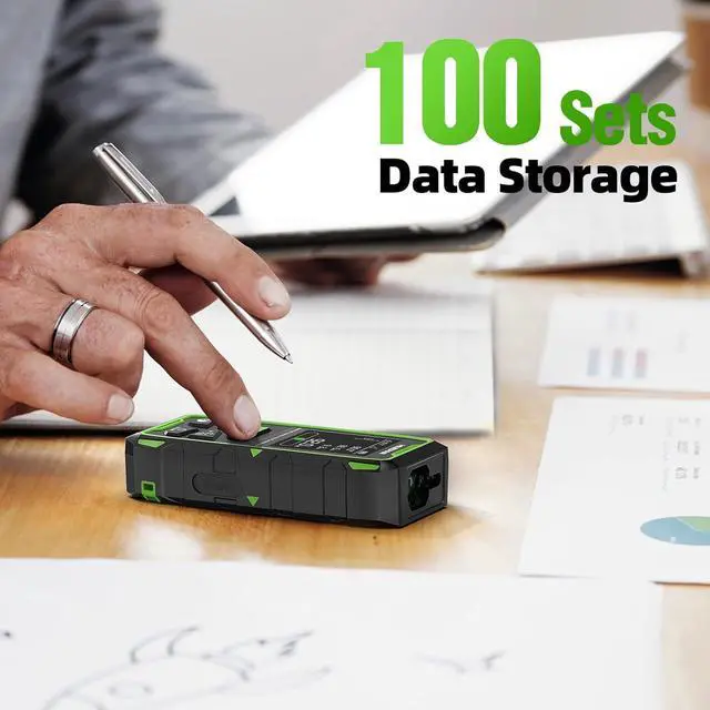 9-in-1 Multifunctional Measuring ToolThis advanced laser measurer offers 9 measurement modes, including length, area, volume, angle, wall area, and 4 Pythagorean modes. It features unit switching (M/In/Ft/Ft+In), 100 data storage groups, and addition/subtraction functions. The continuous measurement mode allows easy determination of midpoint, max, and min values, making it ideal for real estate, engineering, and home improvementfalseAuto-Rotating LCD & Screen Lock for ConvenienceThe smart LCD screen automatically rotates, ensuring clear visibility from any angle. The screen lock feature prevents accidental changes, making this an excellent alternative to traditional laser tape measures.