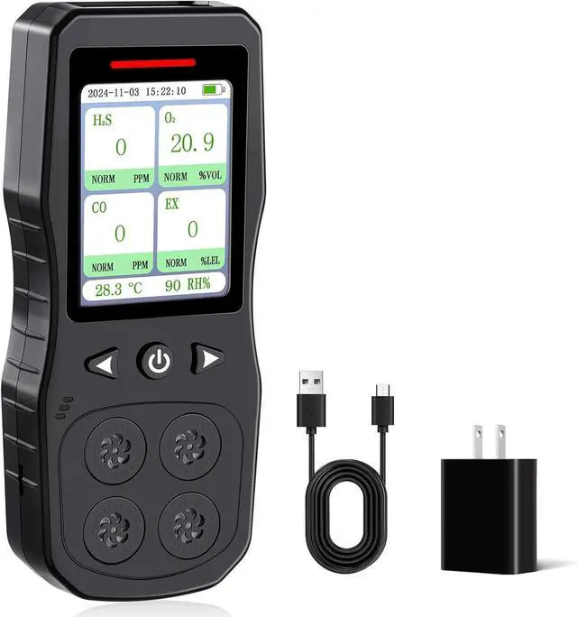 - Humanized Design: Simply turn on to detect gas and easily restore the gas monitor detector to factory settings. Real-time gas concentration of H2S, O2, CO, LEL levels are shown on the 2.8" color LCD screen, as well as ambient temperature(/) and humidity.