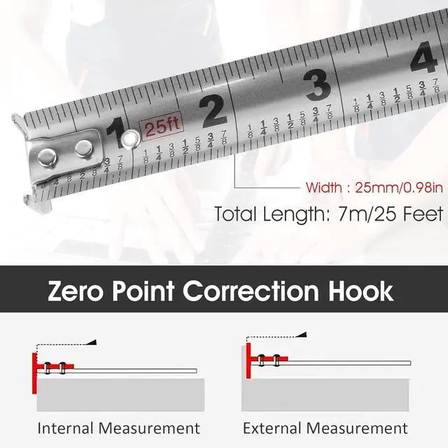 - ([Double-sided Scale] The measuring tape is printed with clear and accurate scales on the double sides to meet your different measuring needs. The tape supports taking the inside or outside of the ruler hook as the reference point to ensure the accuracy of the measured data.