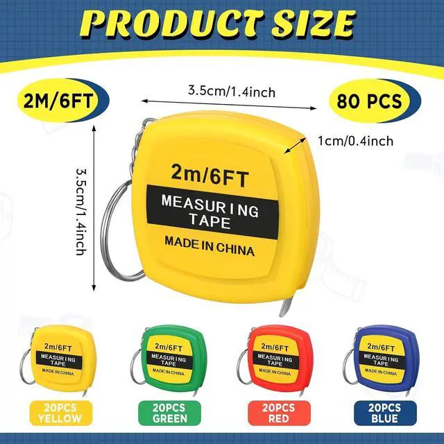- What You Will Receive: the package contains 80 pieces of keychain measuring tapes in 4 colors of red, green, blue and yellow, 20 pieces for each color, adequate to meet your various gift giving needs at parties
