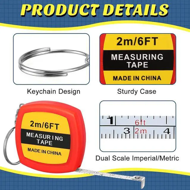 - Functional 2 in 1 Design: you can use our small tape measure retractable as a keychain as well as an easy to use measuring ruler, it is designed with accurate metric and inch measuring scales, with clear readings, and can be extended to 6 feet/ 2 meter, the 2 length scales can meet your different measuring needs, with key ring design, easy to carry
