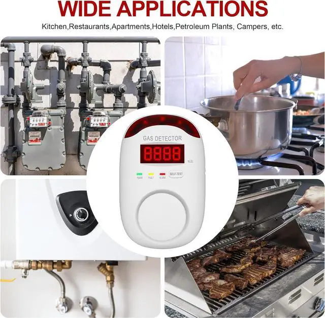 - Alarm Alert- When the concentration of combustible gas leaks to a preset level, the gas detector alarm will sound an 85dB alarm as well as display the concentration level of the gas.