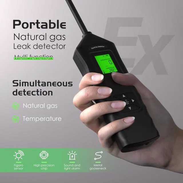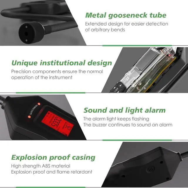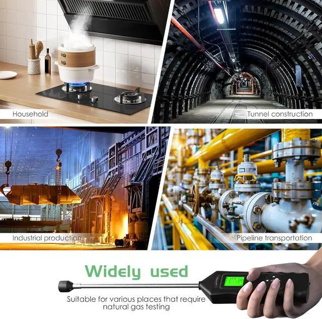- Locate gas leaks effectively: This natural gas tester helps you pinpoint combustible gas leaks in narrow spaces. It detects various gases such as methane, natural gas, propane, liquefied petroleum gas, and gasoline.