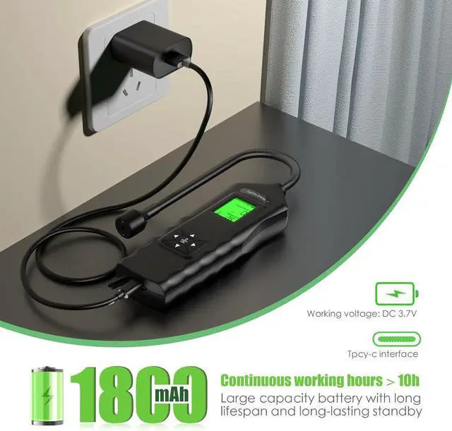 Easy to use flexible probe: Equipped with a 17-inch flexible gooseneck, our portable gas leak detector allows easy access to hard-to-reach areas like natural gas lines, propane tanks, gas fireplaces, sewers, basements, RVs, and other confined spaces. It is suitable for both outdoor and indoor use. falseComplete package and excellent customer service: Each package includes 1 x Gas Leak Detector, 1 x Data Cable, 1 x Charging Plug, 1 x package box, and 1 x User Manual. We are committed to providing outstanding customer support. Please feel free to contact us if you have any questions or concerns. false-