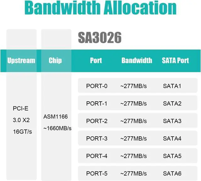 - Swift Data Transfer: Powered by ASM1166, it has a PCI - Express 3.0 X2 upstream speed of 16GT/s. Each of the 6 downstream SATA ports can reach 277MB/s max bandwidth, ensuring fast and stable data transfer for your storage needs.