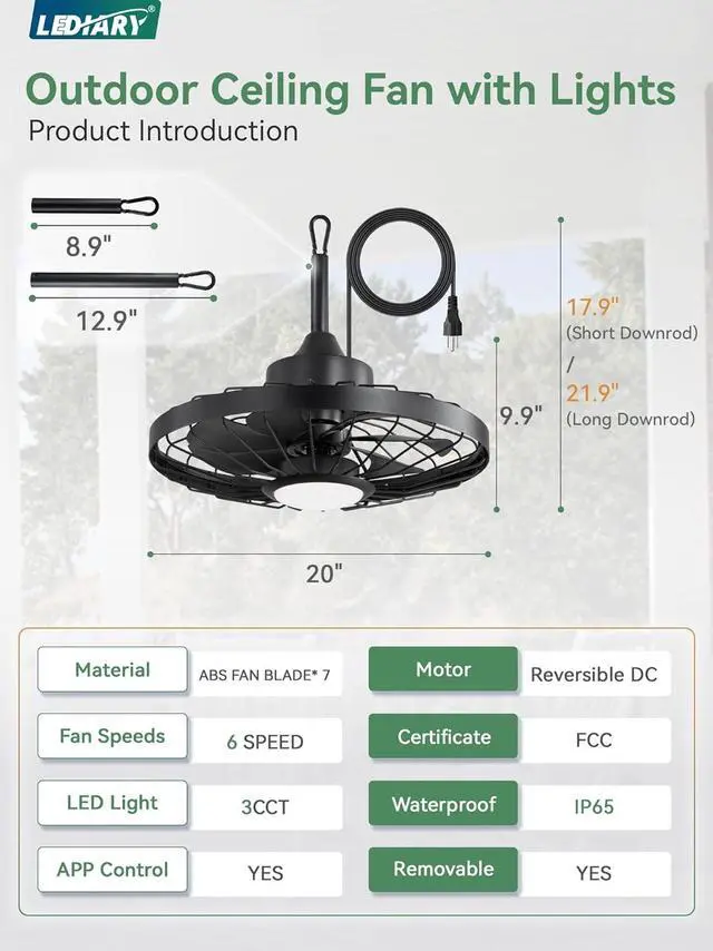 Confidence: The LEDIARY Outdoor Ceiling Fans with remote provide 2-year. If you have any issues please feel free to contact us, we will give you a satisfactory reply, ensuring your satisfaction long after your purchase. false- Plug-in Convenience for