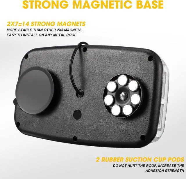 - Powerful Magnetic Base: this warning strobe light uses reinforced magnetic base design, 7 magnets provide ideal adsorption capacity; The lamp body can keep a stable operation without falling off even at high speeds