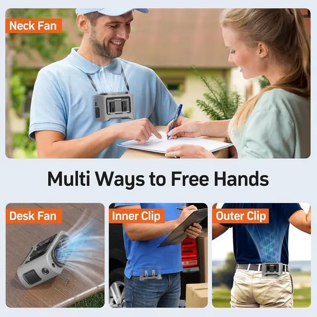 Air Outlets: Equipped with dual motors and air outlets, this clip fan offers stronger airflow and larger cooling coverage. Also comes with 2X belt clips, shirt clips, stands, and a lanyard, making it perfect for hands-free use during hiking, climbing, or bikingfalseThoughtful