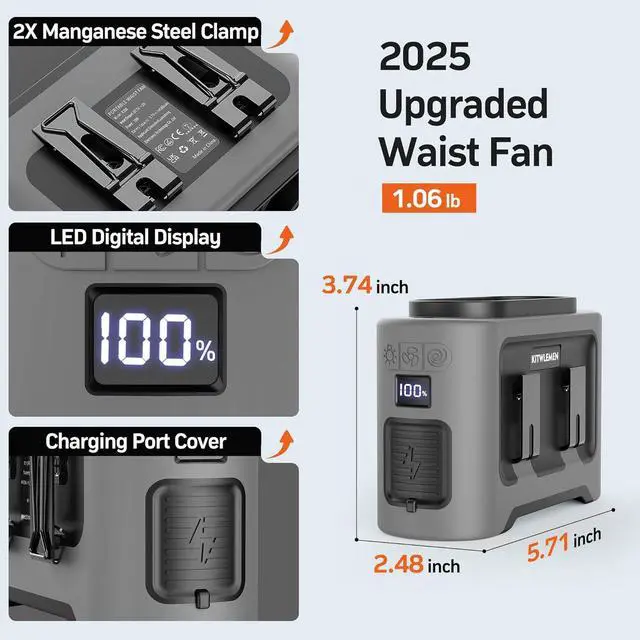 Long-lasting Battery: The KITWLEMEN waist fan features a 14500mAh battery, providing up to 35 hours of continuous cooling on low speed, perfect for camping, hiking, and outdoor adventures to keep you cool
