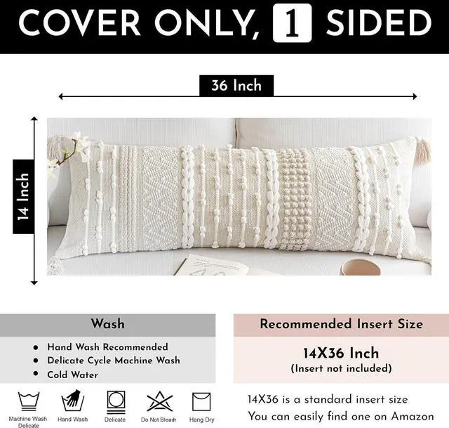 - Cover Only: Boho Decorative Lumbar Throw Pillow Cover 14x36