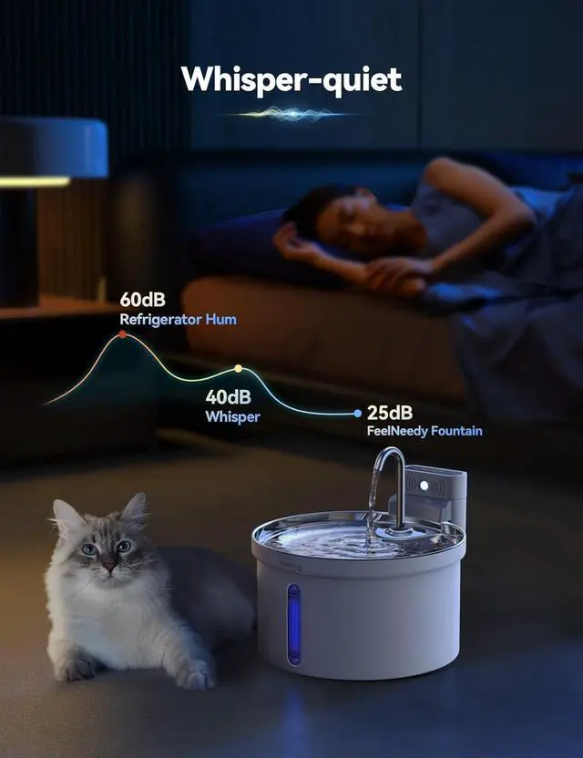 Circulation System: Each drop of water undergoes multi-layered filtration: activated carbon for odor removal, ion exchange resin for softening and removing heavy metals, non-woven fabric for capturing hair and impurities, and high-density pump sponge for eliminating fine particles. This ensures a year-round supply of fresh, healthy water for your pet. We recommend replacing the filter every 2 weeks for pets health(Search "B0D1K826GX" for official filters)false- Water and