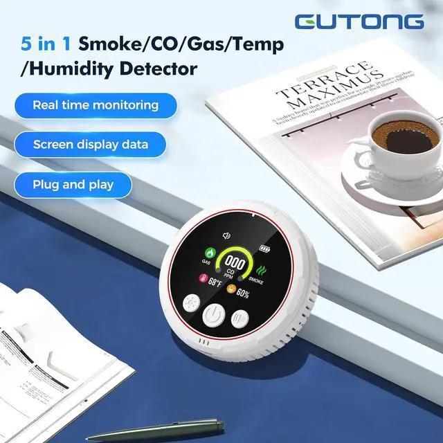 Smart Detector: Smoke and carbon monoxide detector can monitor smoke, CO, combustible gases, temp and humidity in real time, and display dynamic data on HD screen. The sleek and smart design makes it perfectly integrated into your home