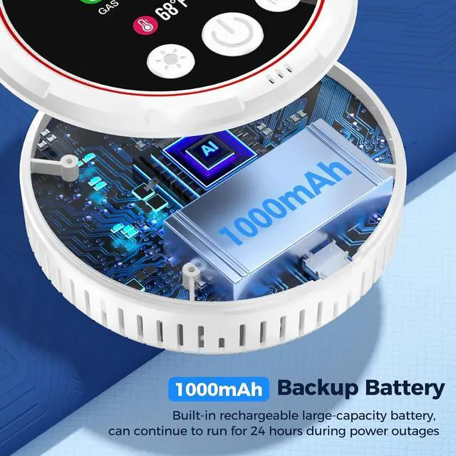 - Plug and Play & Backup Battery: CO detector is plug and play without installation, suitable for any 100-240V standard outlet. The built-in 1000mAh backup battery can run for 24 hours during power outages, ensuring constant protection