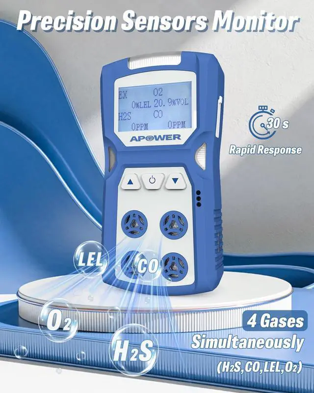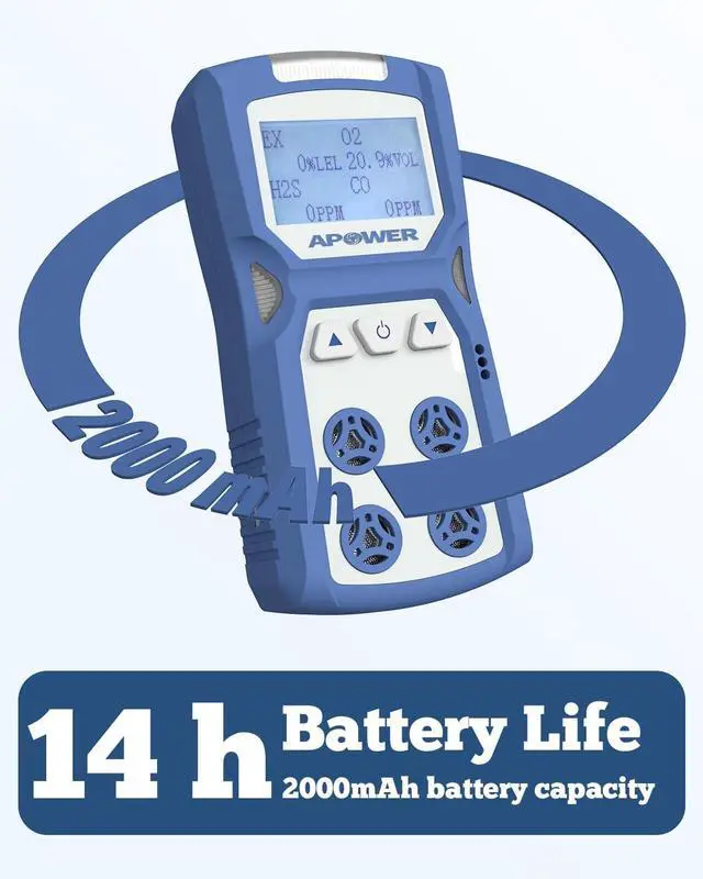 Quick Detection: The APOWER 4 gas monitor detector is designed to rapidly detect 4 gases: H2S, CO, LEL, and O2. Operating time lasts up to 14 hours, ensuring long-term monitoring of gas concentrations. Protect you from the hazards of toxic and combustible natural gases in confined spaces and dangerous work environments